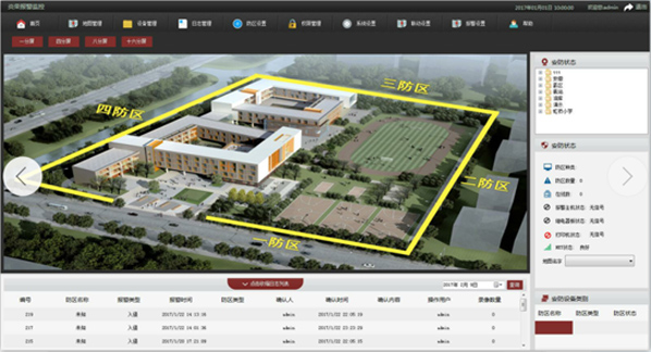 3、可實時顯示每個防區(qū)的工作狀態(tài)如:報警、布/撤防、在線/離線等;
